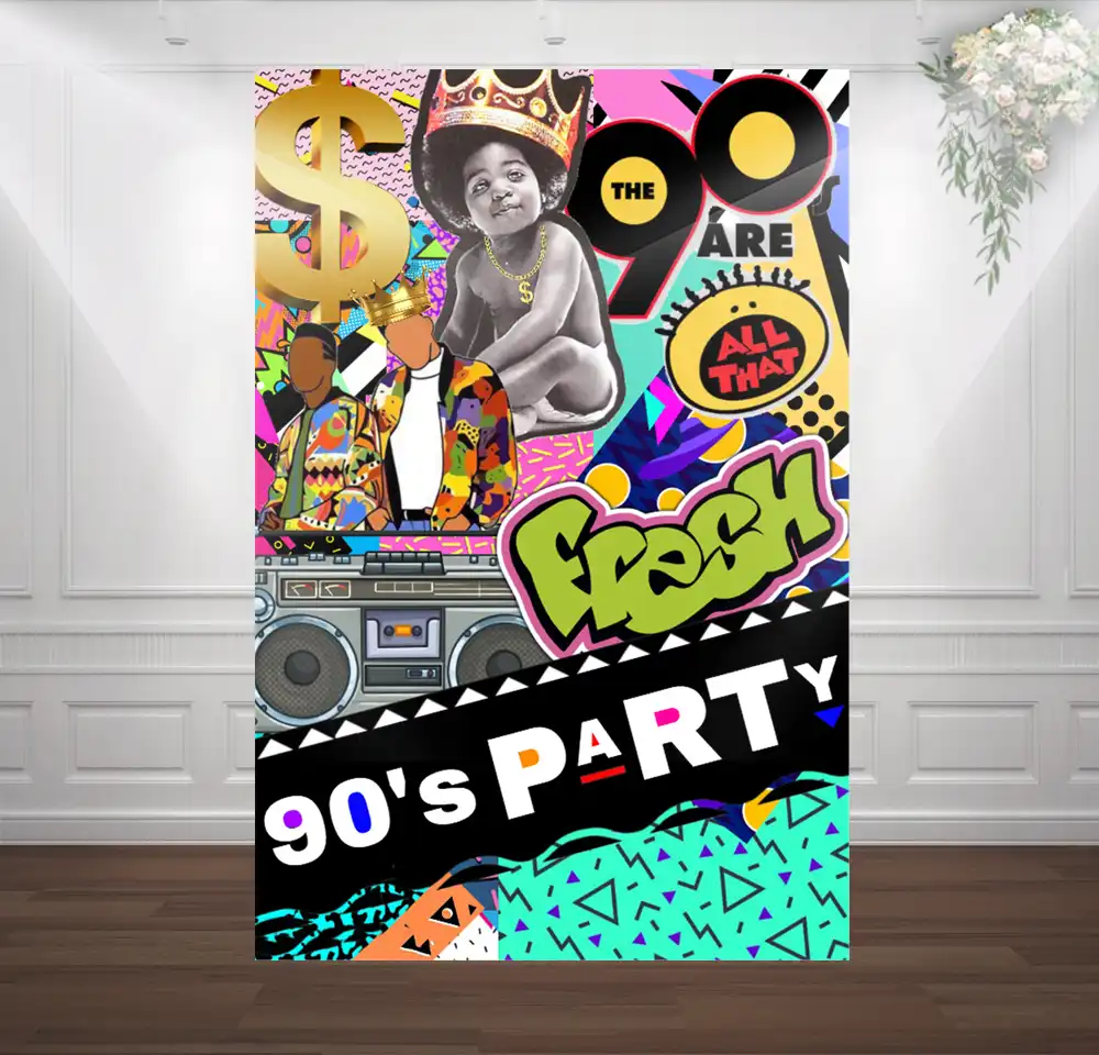 Neoback 90s Party Hip Hop Graffiti Style Portrait Backdrop Retro 90th Birthday Theme Party Decoration Photo Backdrops For Studio Background Aliexpress 90's were the time when everyone went crazy for tamagotchis, guys sported frosted tips, and denim ruled everyone's wardrobes.