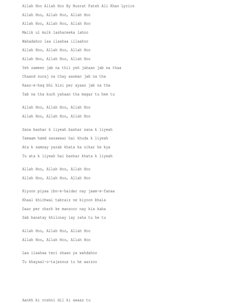 Allah Hu Allah Hu Naat Lyrics In English / This actual name of the surah which begins with qul hu allah hu ahad is known as surah ikhlas.