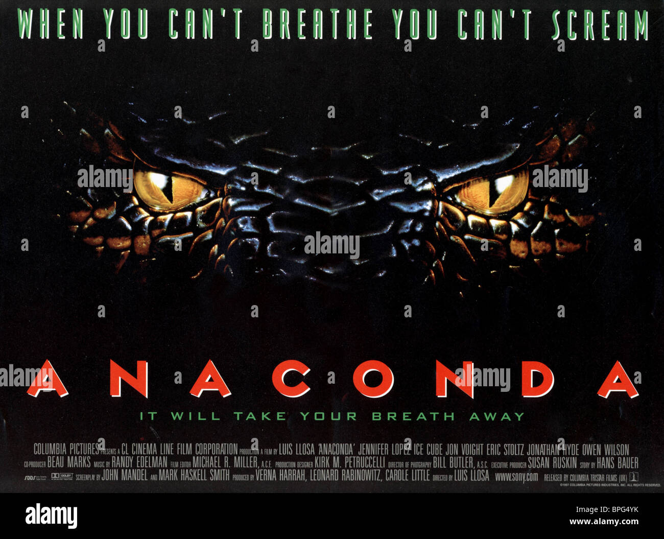 Anaconda Film Poster : Con jennifer lopez, jon voight, ice cube, owen wilson, eric stoltz, jonathan hyde.