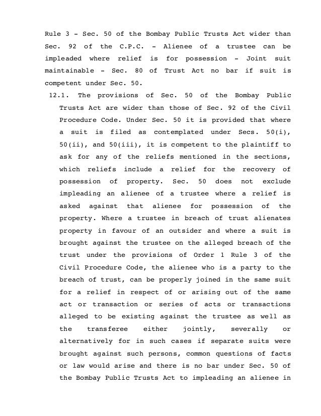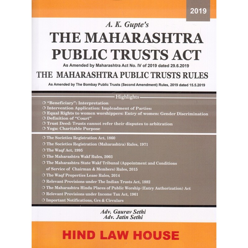 Bombay Public Trust Act 1950 Section 29 : However trust can be registered under companies act as well and those are termed as section 25 companies as per the erstwhile companies act 1956.