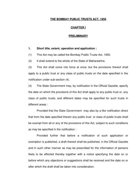 Additional Reporting By Auditors Of Charitable Trusts Under Maharashtra Public Trusts Act 1950 Specific acts for different states governing the public charitable trusts or similar endowments have been mentioned in the list towards the end of.