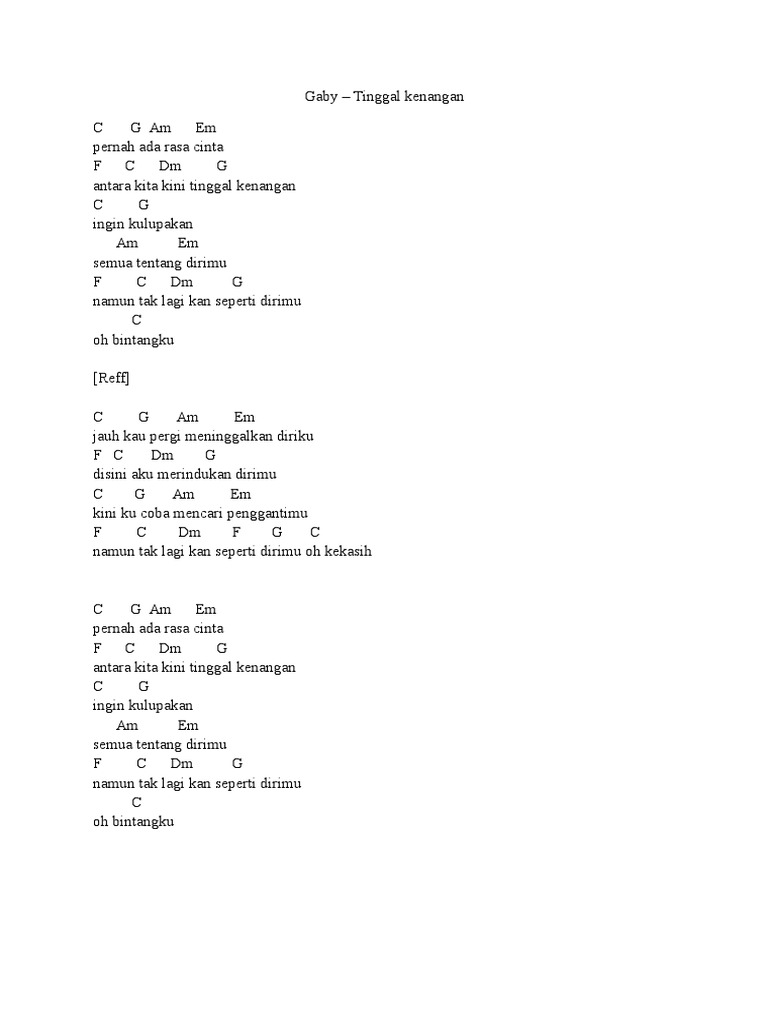 Chord Gitar Gaby Tinggal Kenangan Chordtela / Capo fret 3 intro :
