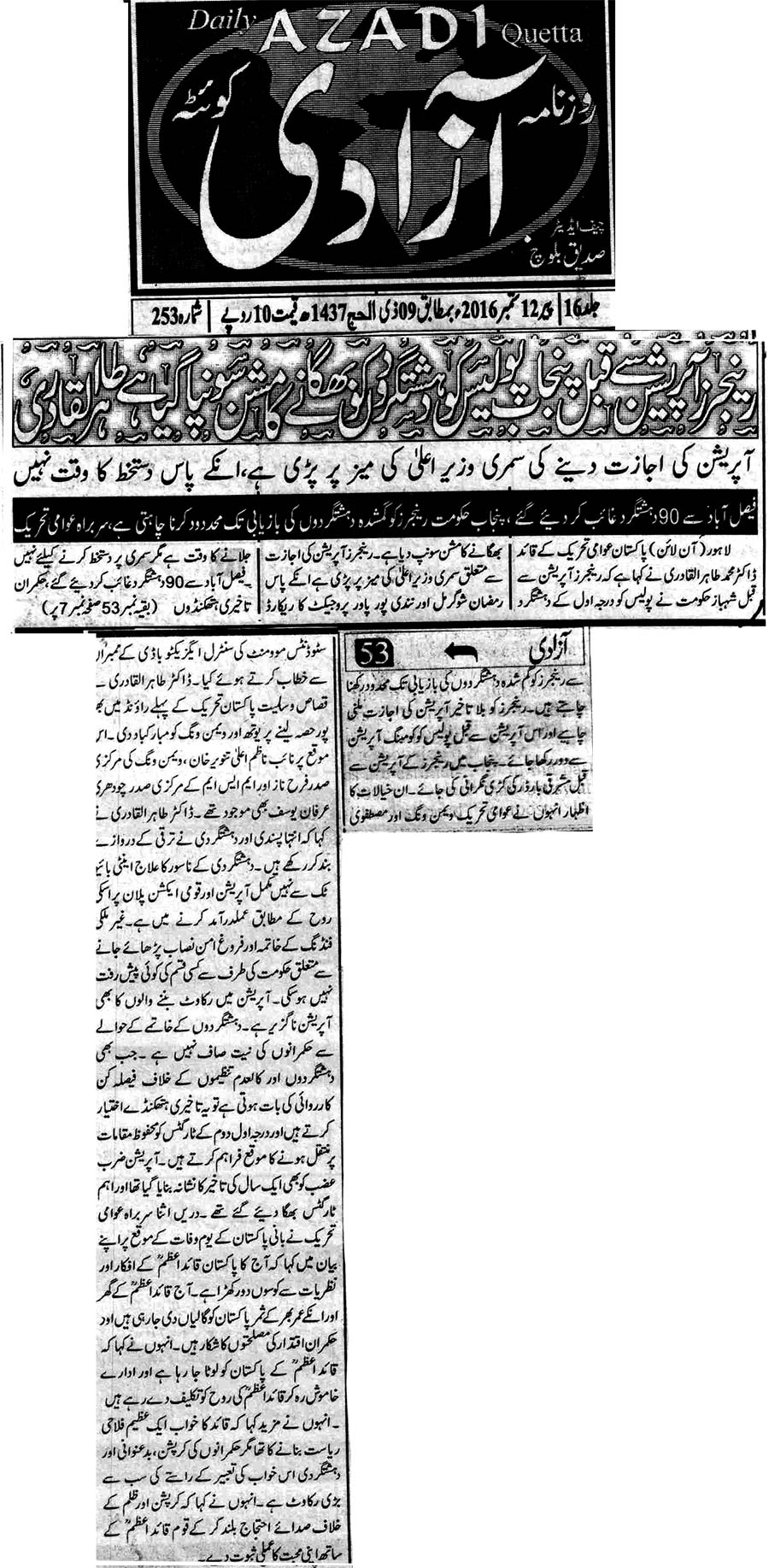 Daily Azadi Newspaper Quetta : Latest and breaking news updates from pakistan, all the news from today's newspaper and epaper for lahore, karachi and islamabad.