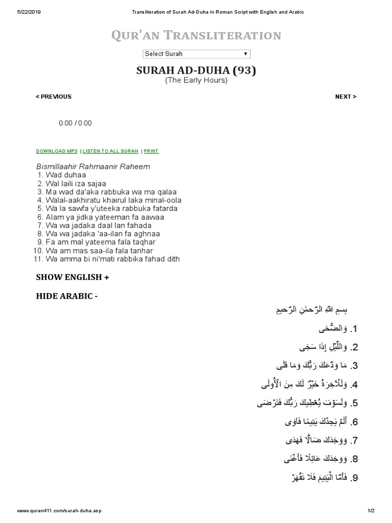 English Translation Surah Al Duha : Ahadi july 1, 2009 al baqarah no comments.