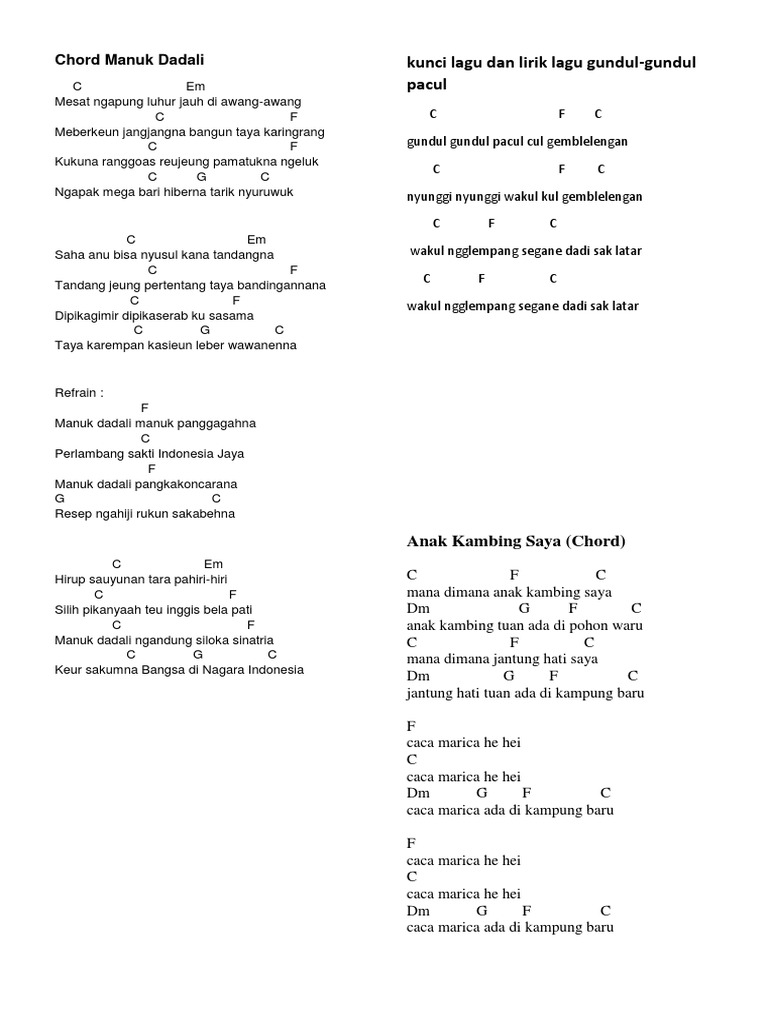 Gundul Pacul Chord - Music_notechords for tarian gundul pacul.