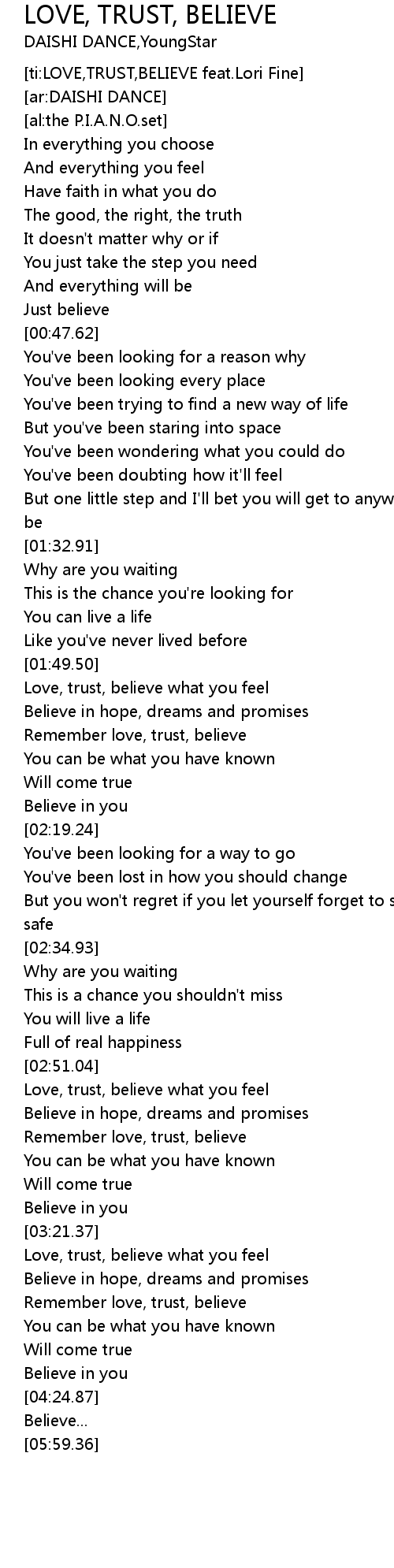 I Will Be What I Believe Lyrics : Then, all of a sudden, the lyrics made sense and everyone could see how great that song really was.