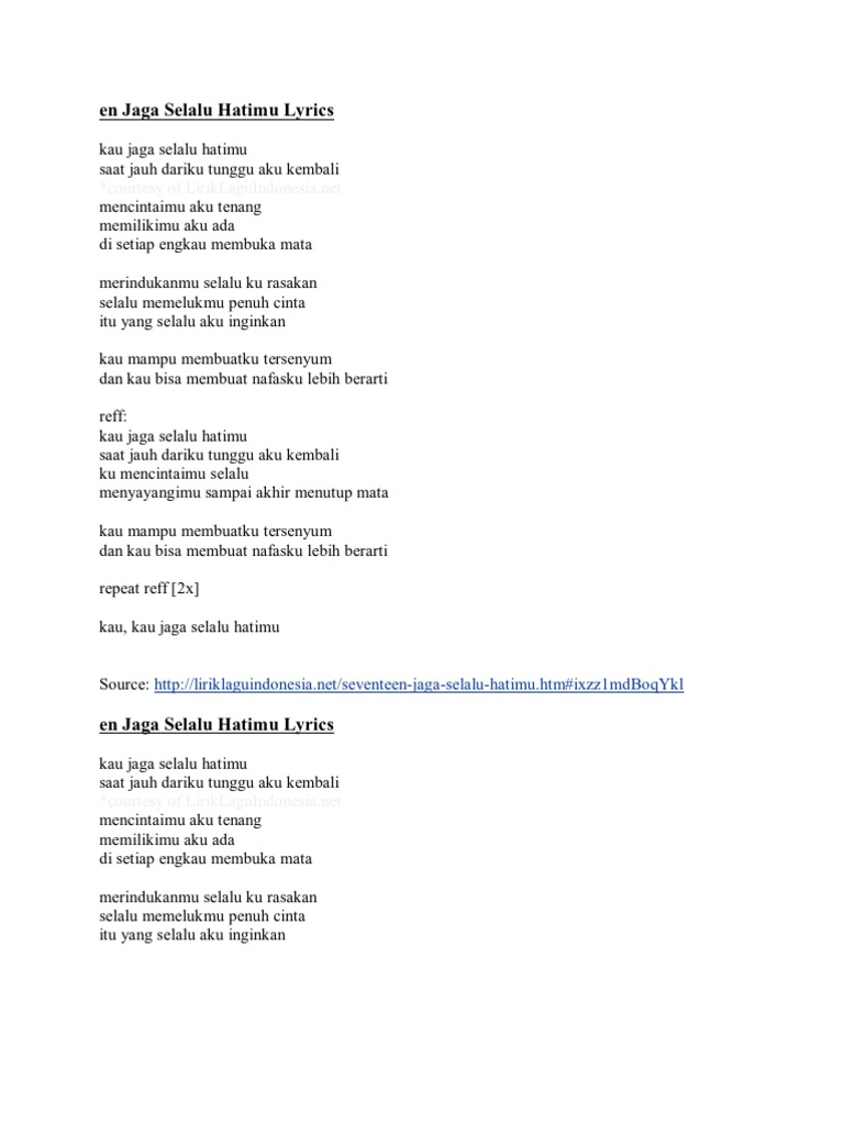 Jaga Selalu Hatimu Lirik : Merindukanmu selalu ku rasakan selalu memelukmu penuh cinta itu yang selalu aku inginkan.