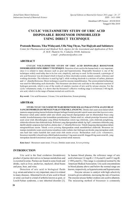 Jusami : Jurnal sains materi indonesia indonesian journal of materials science.