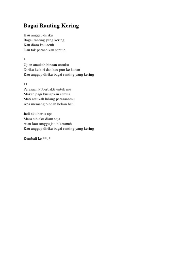 Kau Anggap Diriku Bagai Ranting Yang Kering - Materi tentang apakah yang dimaksud not angka dan not balok brainly.co.id/tugas/14253.