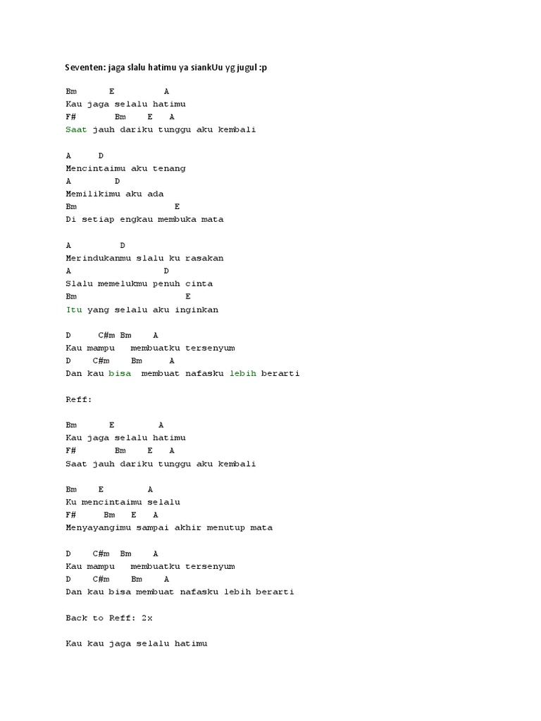 Kau Jaga Selalu Hatimu Chord / F# bm e a menyayangimu sampai akhir menutup mata.