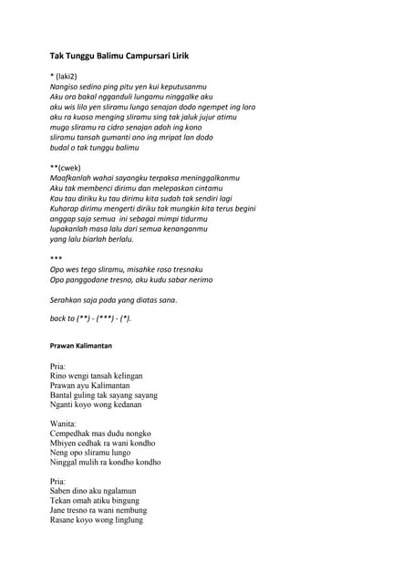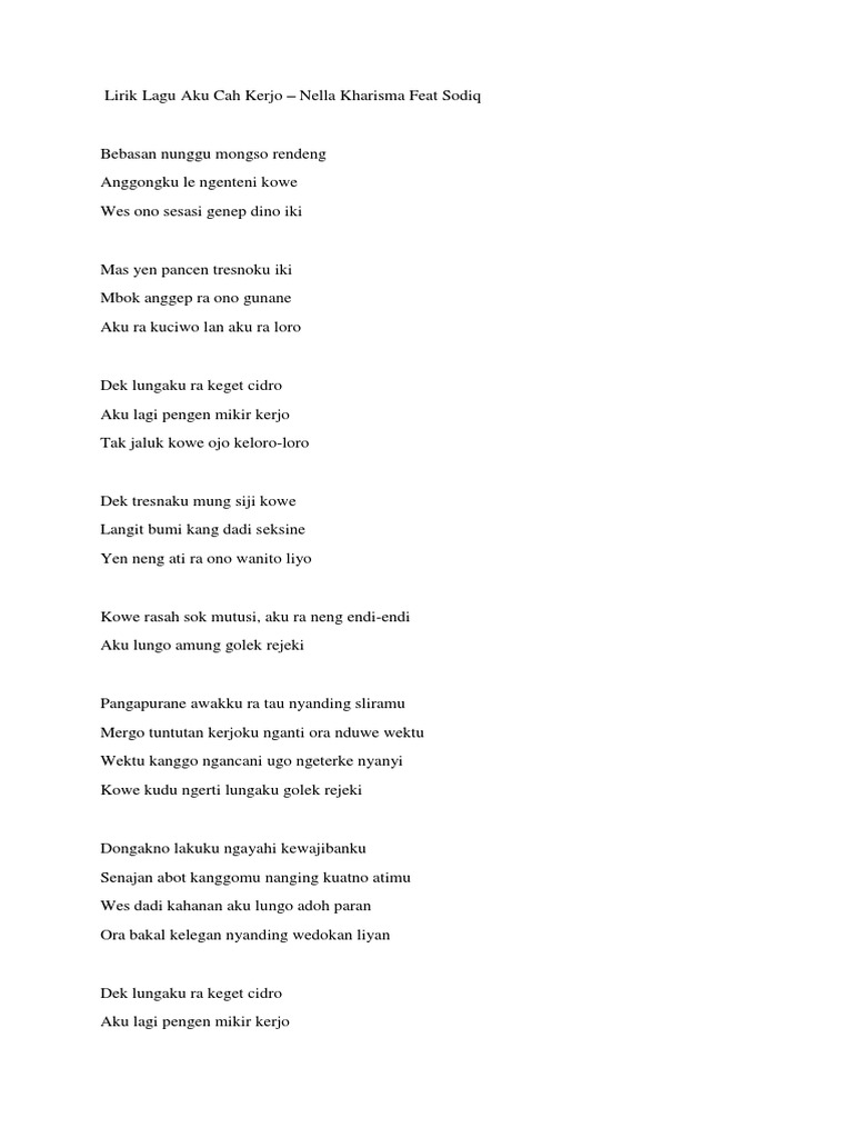 Lirik Lagu Kanggo Kowe - Siji sijine mung riko nong atinisun selawase separuh rogo iki.