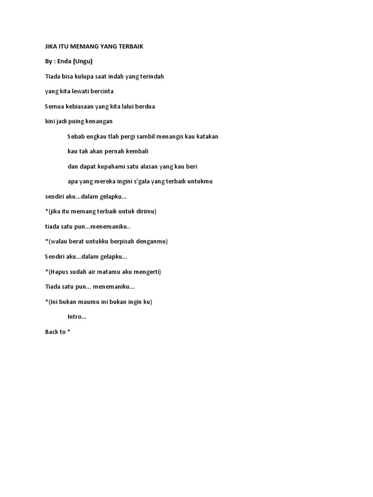 Lirik Lagu Ungu Jika Itu Yang Terbaik - Ungu jika itu yang terbaik: