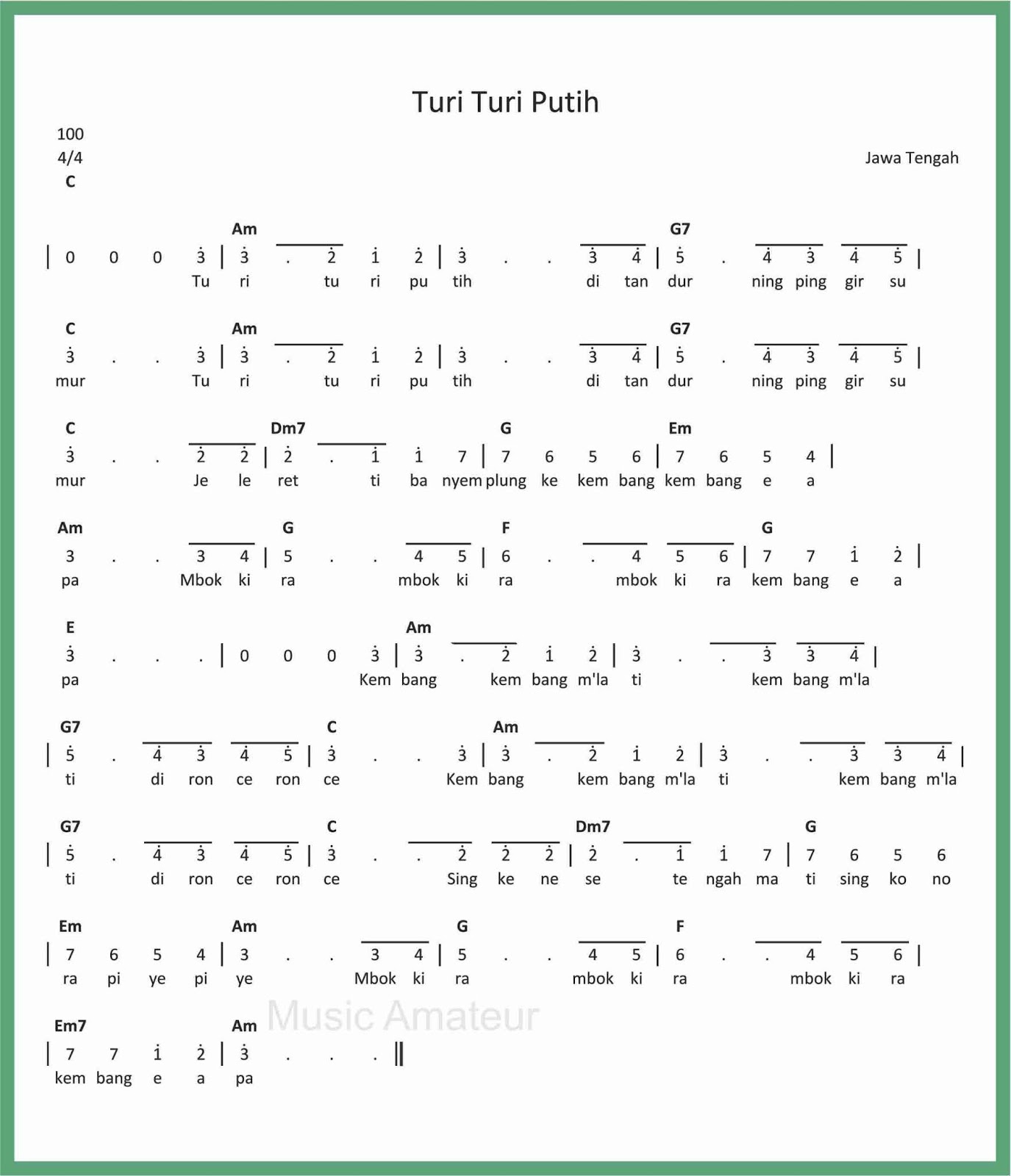 Lirik Turi Putih Lengkap / Turi putih turi putih ditandur ning kebon agung ana cleret tibo nyemplung mba ira kembange apa.