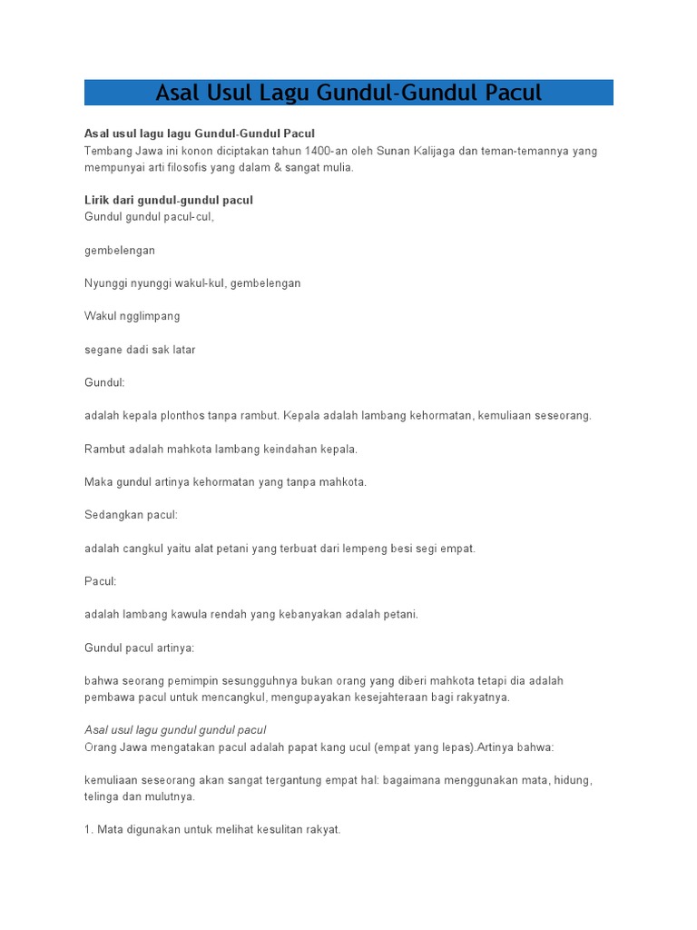 Makna Lagu Asal Lagu Gundul Gundul Pacul / Download lagu gundul gundul pacul mp3 dapat kamu download secara gratis di playlagu.