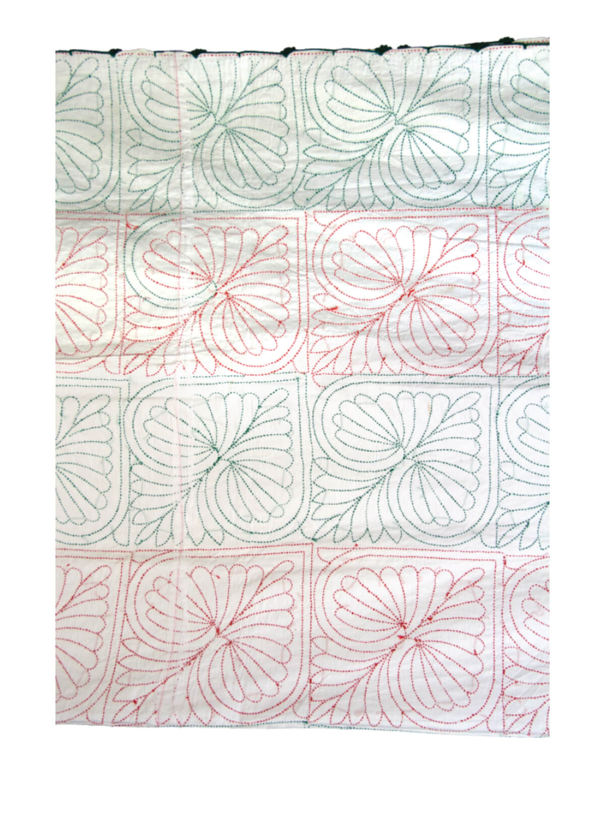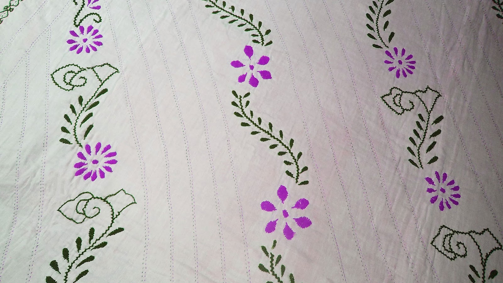 Kantha Embroidery Scarves From India Bona Buni Kantha stitch saree, kantha silk saree, hand embroidery saree, kanth work silk saree white check silk saree with all over black and deep fuchsia nakshi kantha embroidery and sequin detailing.