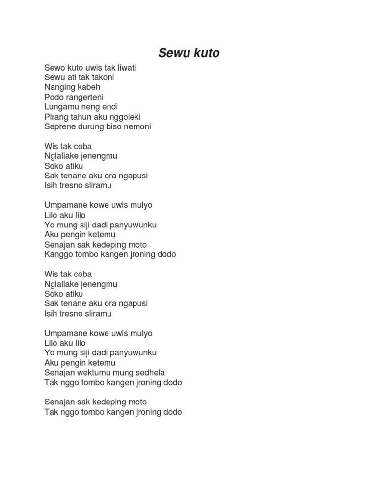 Sewu Siji Lirik - Kamis, 23 mei 2019 13:09.