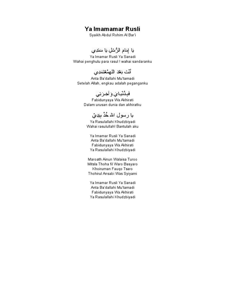 Ya Imamarrusli Lirik / Ya imamarrusli syahla lirik free mp3 download.